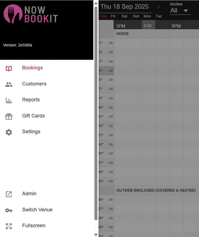 1. From your Bookings page, click on the three white lines in the top left corner of your screen
