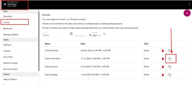 To duplicate an event, please complete the following steps from your restaurant diary: