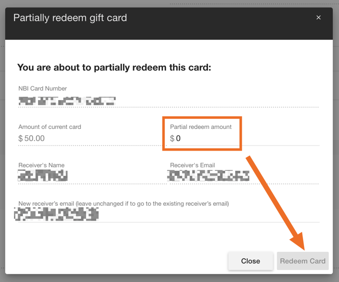 - Once on this page, you can then either fully redeem or partially redeem the gift card: