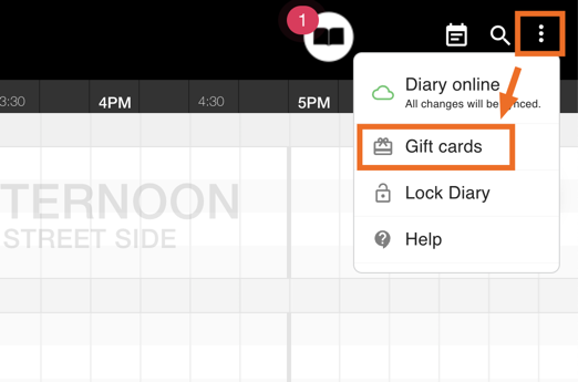If you have a gift card that you'd like to redeem for a customer, you can do that through the Diary by following the steps below: