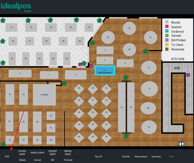 Highlight the table and click ‘POS’ to open the order and begin adding items.