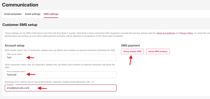 Click Setup prepay SMS