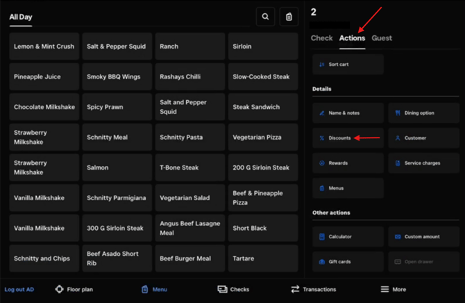 Click on ‘Actions’, then Discounts.