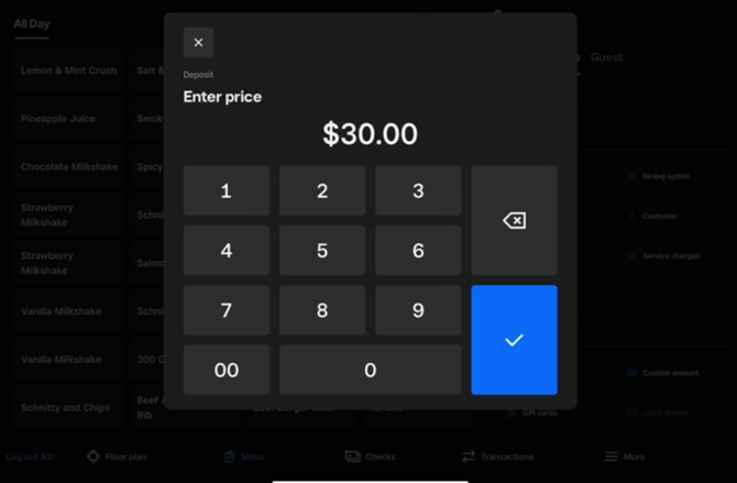 Opening the table in Square POS